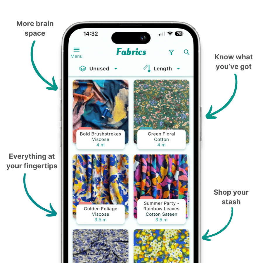 Catalogue fabric, store patterns and rediscover the joy of your sewing collection.Join over 14,000 sewists already getting organised with Stash Hub.